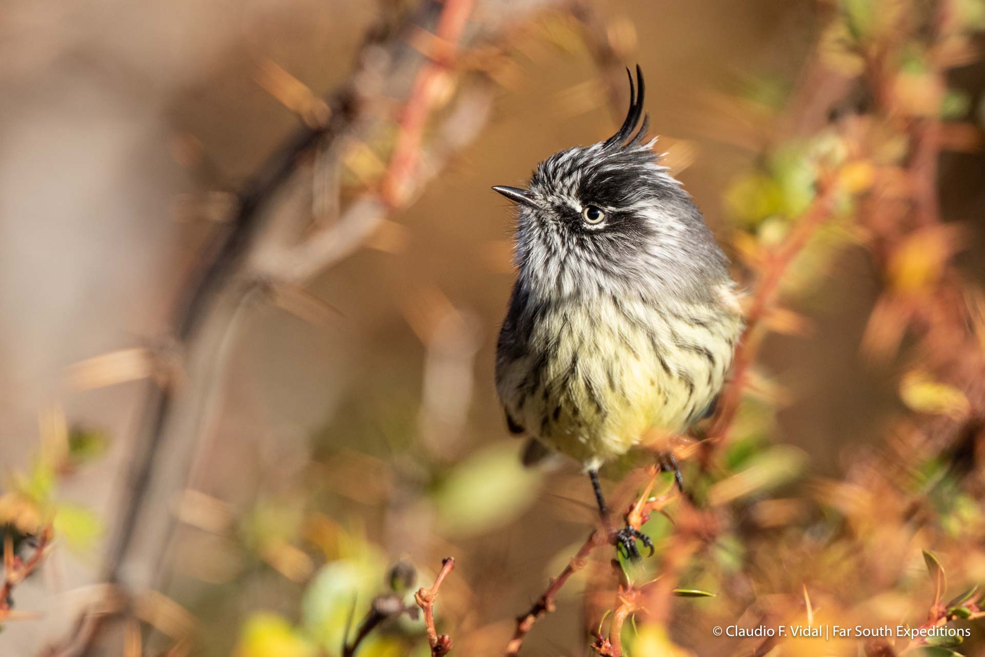 Pajarito inquieto con copete alzado, muy curioso y difícil de fotografiar. Habita bosques y matorrales.
